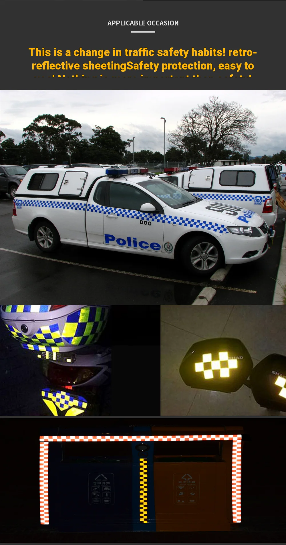 Application | Reflective tape for vehicles, like cars, trucks. |