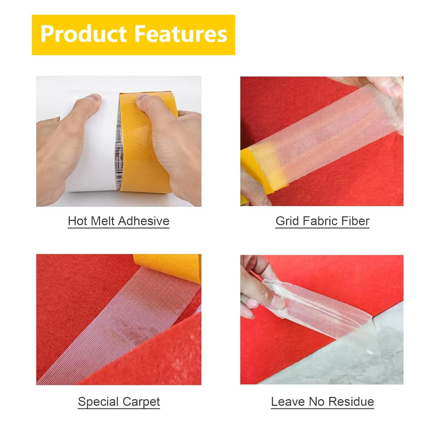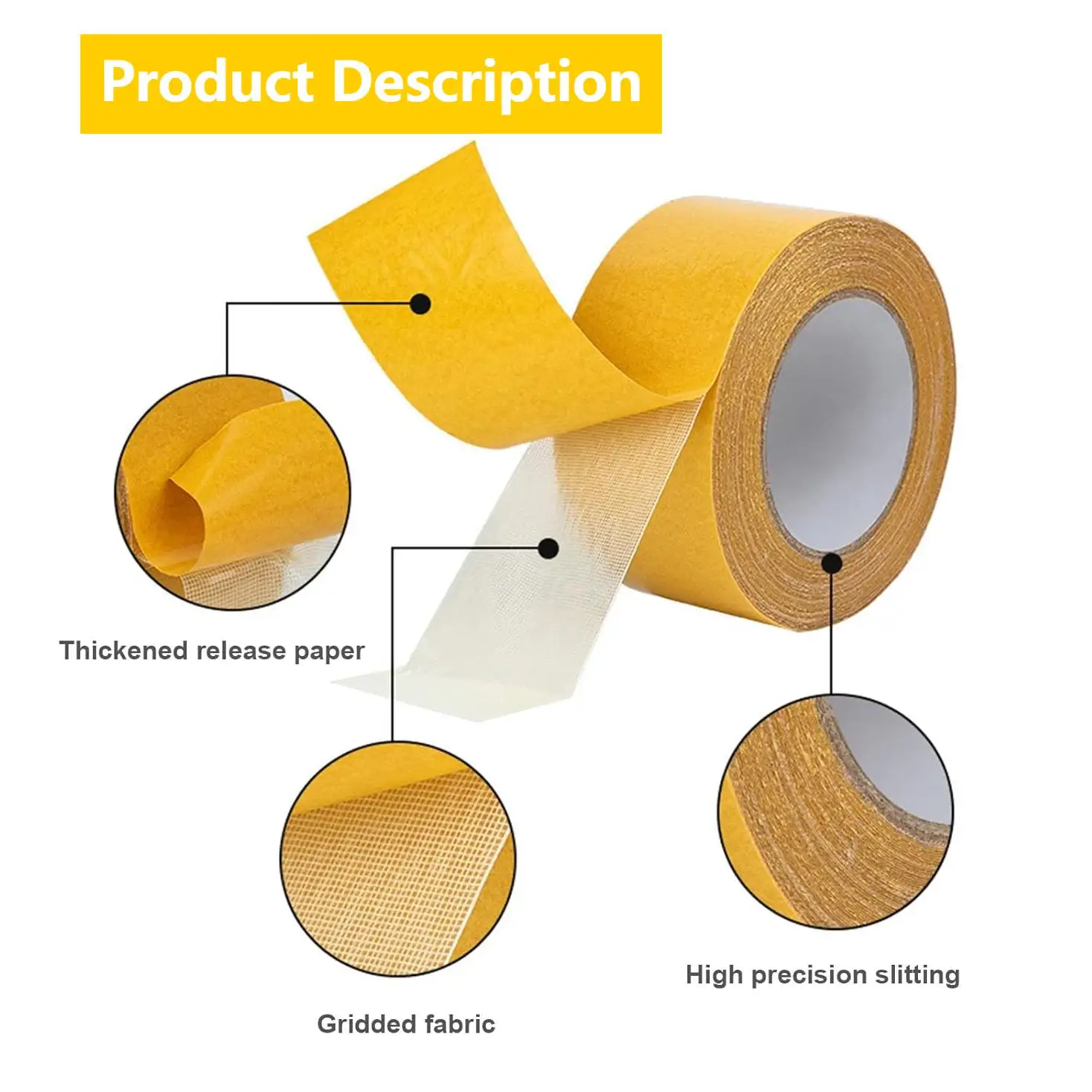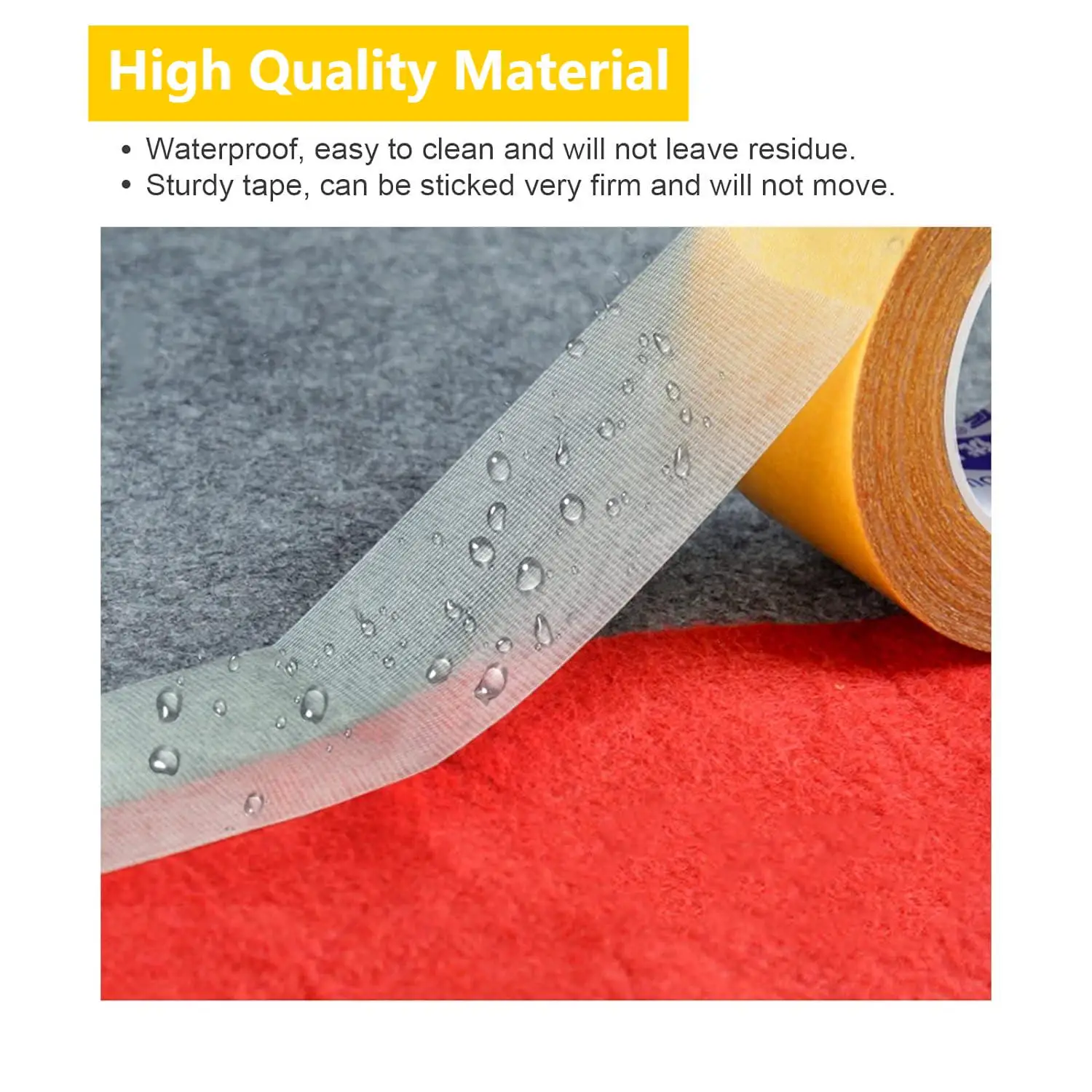 Applications | The double sided tape heavy duty type is widely used at home, office, school, or super market. Often used as mounting tape, to keep area rugs in place, to stick power strips on wall, to decorate a photo wall, etc. |