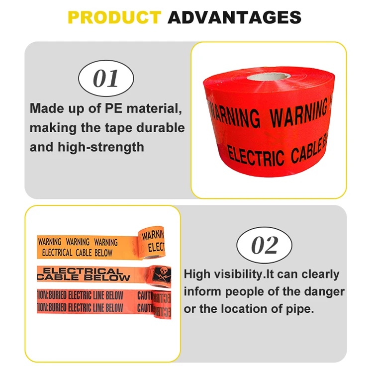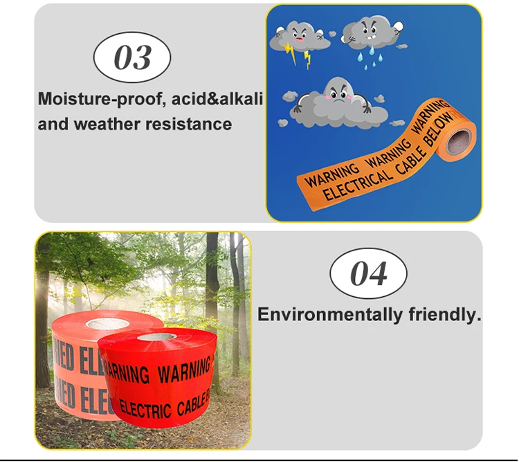 High Quality Non-Detectable Marking Warning Tape for Underground Utility Cable Buried Wire Trace Marker 1- 100 pieces101 - 499 pieces500 - 1000 pieces $3.65 $2.95 $2.35 Phone:+86 15058222082 E-mail: jack@aiyatape.com WhatsAPP: +86 15870766082 Download product catalog Brand: AIYA TAPE Item NO:AIYA-5473 OEM service: Offer Sample: Freely Provided Delivery time:7 Days On-time delivery:100.0% High Quality Non-Detectable Marking Warning Tape: Ideal for underground utility cables, buried wires. Reliable trace marker, durable—marks lines clearly for tracking. Perfect for non-detectable needs, ensuring efficient utility management. Product Details TEL:+86 15058222082 WhatsApp:+86 15870766082 EMAIL:jack@aiyatape.com Place of OriginXiamen, ChinaMaterialPEGlueNon adhesiveLength100-500mWidth50mm,70mm,75mm,100mm,150mThickness30-150micronColorBlue/Purple/Green/Red/Orange/Yellow or customizedMOQ100rollsPrintingCustomised to customer requiremmentUseUnderqround Cable MarkingProduct DescriptionApplication Prev: Underground Electric Warning Marker Tape 150mm X 365M Underground Electrical Warning Tape Next: Underground Metal Foil Detectable Warning Tape Aluminum Tape Optical Fiber Cable Detectable Tape Related Products Underground Electric Cable protection Cover Warning Board Cable Tile Underground Detectable Tape 3inchx 1000 Feet Printed Black and Red Are Electrical Line Detective Underground Warning Tape Detectable Underground Warning Tape Caution Buried Communication Line Below Underground Warning Tape Underground Electric Warning Marker Tape 150mm X 365M Underground Electrical Warning Tape