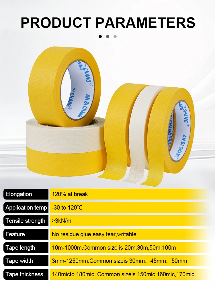 Feature | Masking paper tape with water-based rubber,soft and fit,no residue,high adhesion,easy to tear,can be written on. |