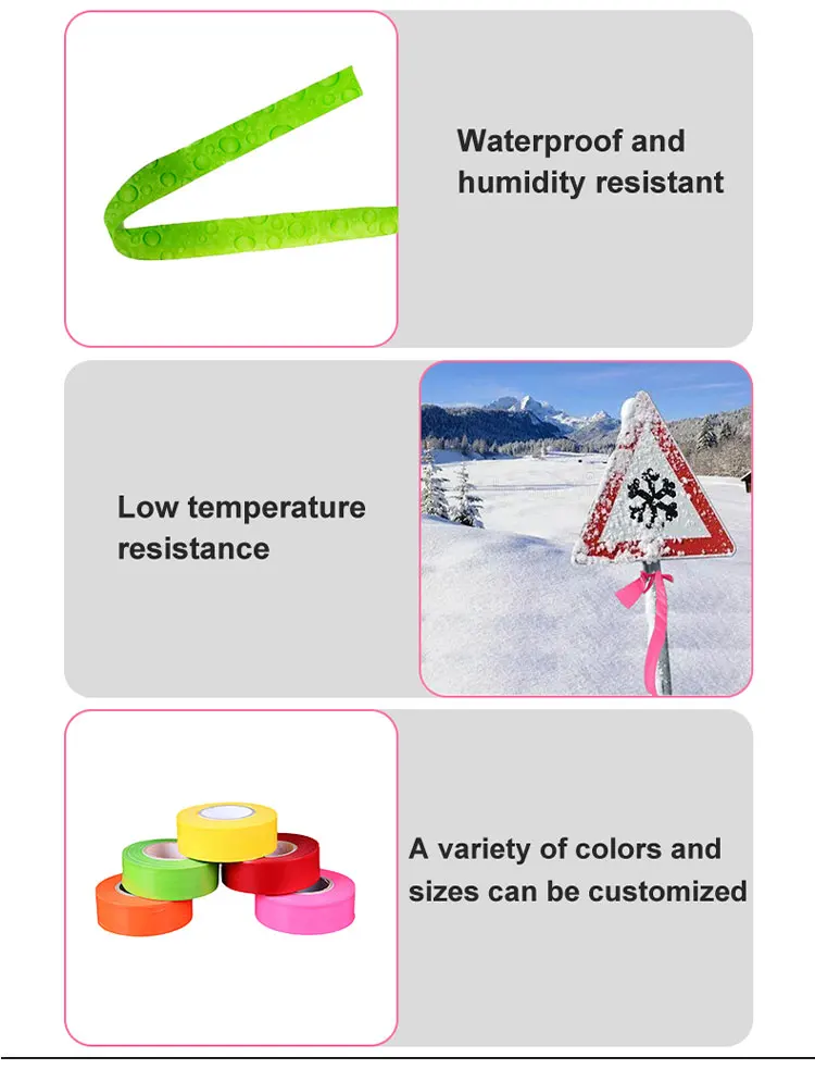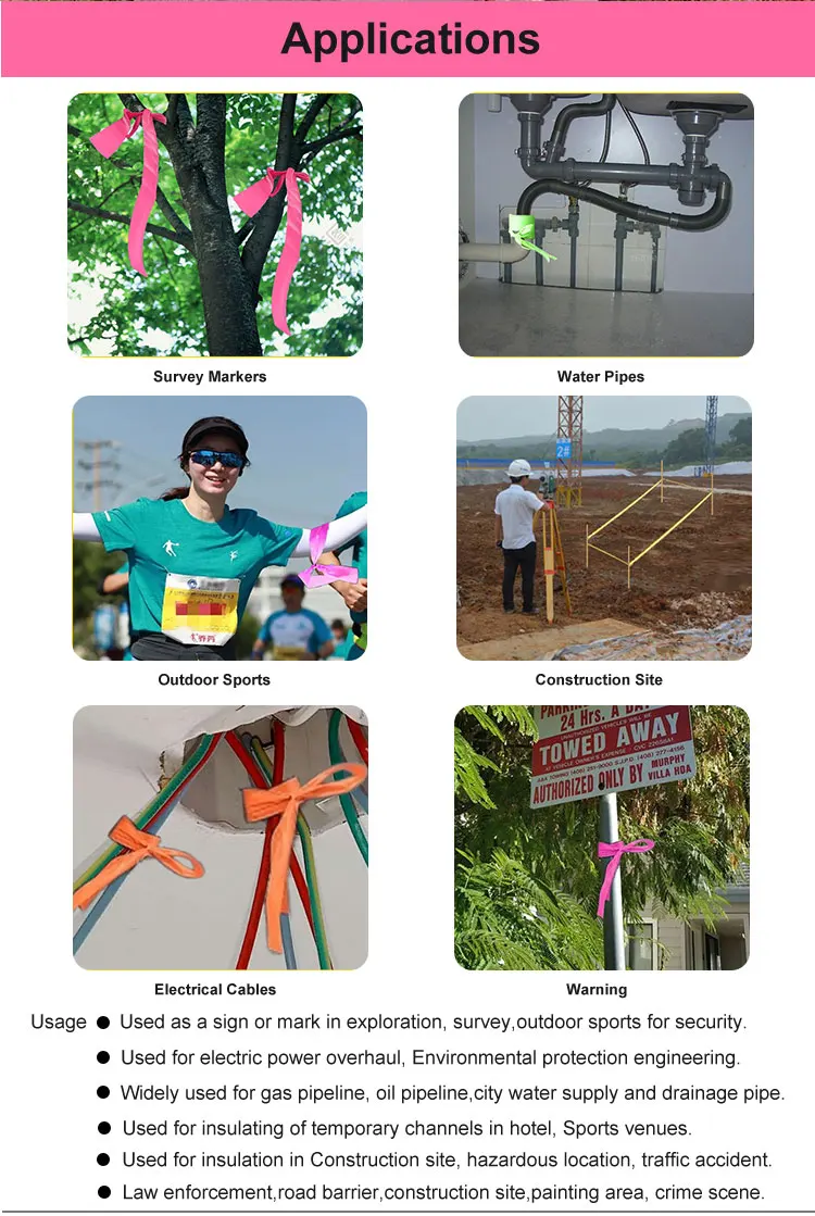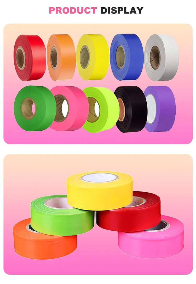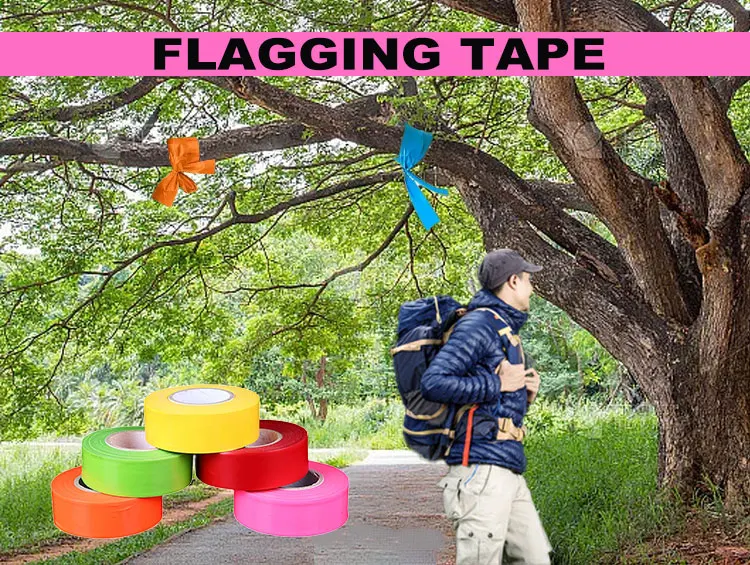 Hot-selling biodegradable forest flagging tape in bright blue color. Made of eco-friendly PVC material for outdoor warning/marking purposes. Highly visible, durable, and weather-resistant. Ideal for forestry, surveying, and construction sites. 50m per roll with clear printed patterns.