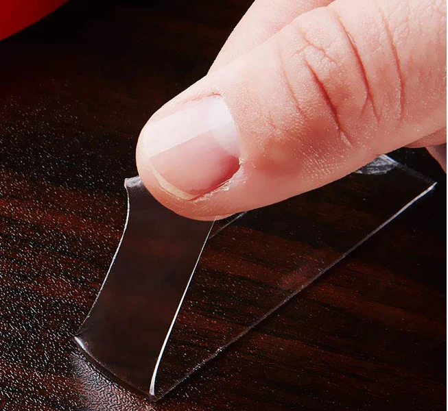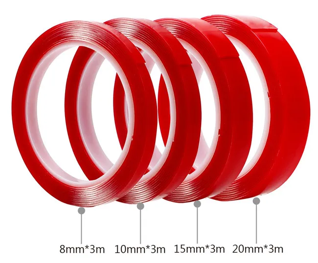Acrylic adhesive material double sided mounting tape, crystal clear, non effects to appearance, especially suitable for glass decoration, the design of reserved red backing off helps you easy to peel, convenient for tape applying.
