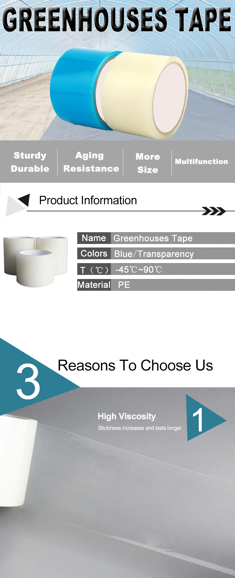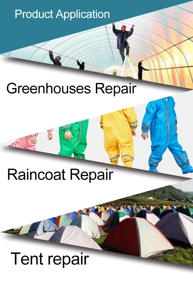 irregular surface. Widely used in repairing greenhouse film and growing greenhouse. Make sure your greenhouse film is completely dry and free of dust or algae before use.