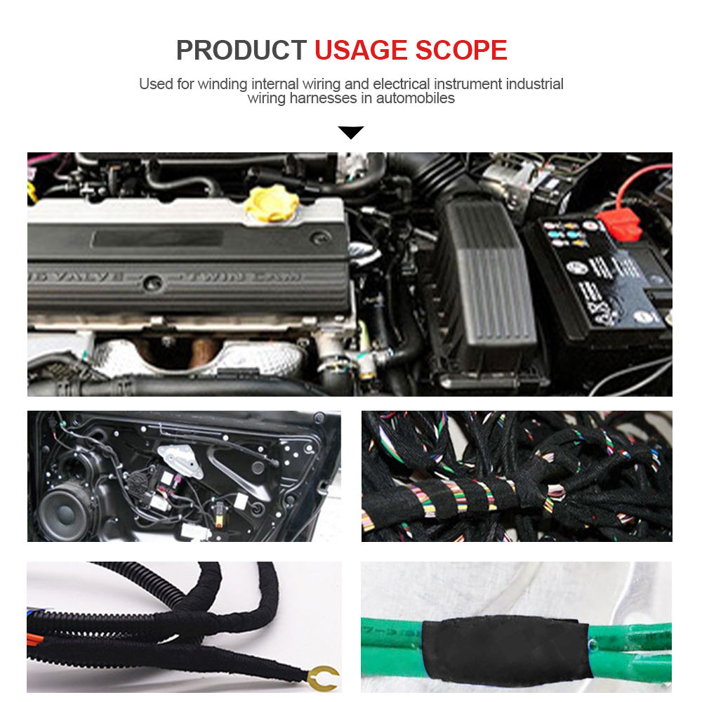 Cloth Automotive Wire Harness Tape is using cloth as backing material and coated with pressure sensitive adhesive. It is used for